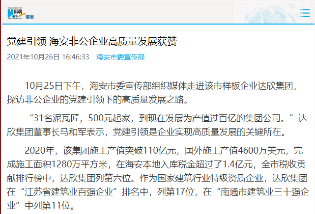 歡迎訪問南通市達欣工程股份有限公司官方網站!