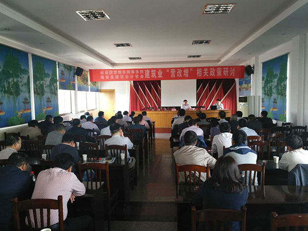 集團公司董事長馬和軍在培訓前做動員講話,他要求集團上下要高度重視“營改增”給建筑行業帶來的沖擊和機遇,參培人員要虛心聆聽財稅專家的講解,認真學習、理解、適應“營改增”政策,在新的稅制改革起跑線上,要用新的思維、新的架構,不斷完善新的管理流程,以務實有效的行動積極應對“營改增”。培訓邀請了縣建筑會計學會會長黎勝玉高級會計師、海安縣國稅局稅征科科長劉家健、海安國源稅務事務所所長徐進注冊稅務師等專家,分別從營改增的目的和意義、解讀營改增試點文件及通告、營改增實務及納稅申報等進行了講解。