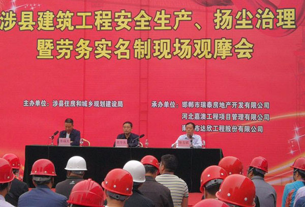 河北涉縣建筑工程安全生產、揚塵治理暨勞務實名制現場觀摩會在第三工程公司御湖天城項目召開
