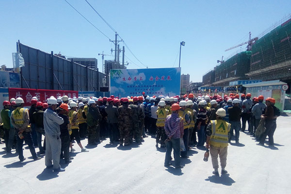 儀式上,君豪輕紡城項目部項目經理雷遠明宣讀了《“安全生產月” 、“安全生產萬里行”活動》的倡議書和安排部署;生產經理盛慶國針對當前安全形勢、施工現場的安全隱患結合事故案例進行了教育。最后,工程公司經理丁國東就“安全生產月”和“安全生產萬里行”活動提出具體要求,要求項目部全體人員迅速行動起來,積極抓好安全生產的各項工作,堅決杜絕生產安全事故的發生,確保全年安全生產目標的順利完成。