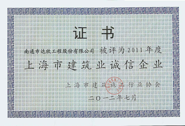 根據《上海市建筑施工企業誠信建設行業評價試行辦法》和《上海市建筑施工企業綜合實力排名辦法》、2011年度企業誠信建設相關考核、《指標體系及評分標準》等內容,第一工程公司在經過申報、初審、征詢主管部門意見、上網公示四個環節后,最終由上海市建筑施工企業誠信建設行業評價委員會審定通過,榮獲2011年度“上海市建筑業誠信企業”稱號。這是達欣股份自易名以來連續五年獲此殊榮。此外公司還被評為2011年度“上海市建筑施工企業綜合實力進步獎”稱號,承建的萬寶國際廣場項目榮獲2011年度上海市“白玉蘭”優質工程。
