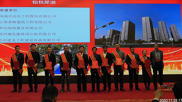 11月25日,2020中國土木工程詹天佑獎優秀住宅小區技術交流會(城市更新與發展)在北京舉行,由達欣集團第一工程公司承建的蘇州鉑悅犀湖項目榮獲“2020中國土木工程詹天佑獎優秀住宅小區金獎”,這是達欣集團連續三年榮獲“中國土木工程詹天佑住宅小區獎”榮譽。