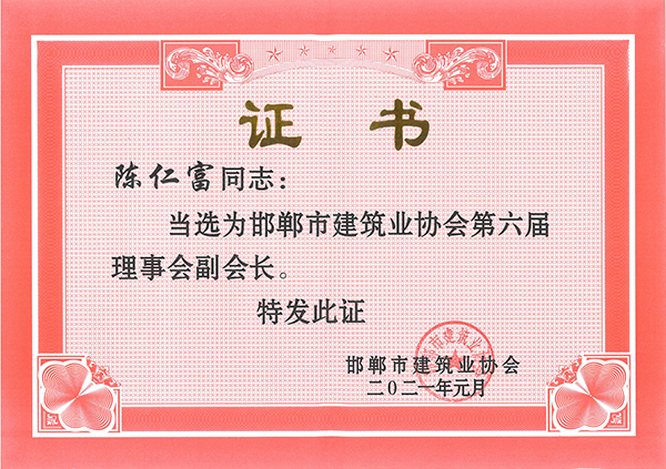 2021年1月8日,邯鄲市建筑業協會第六屆會員大會第二次會議在邯鄲市舉行。會上,第三工程公司總經理陳仁富當選為邯鄲市建筑業協會第六屆理事會副會長。