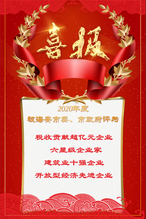 海安市2020 年度總結表彰大會于2月19日下午在市文化藝術中心召開。會上對2020年度全市各條戰線中涌現出來的先進單位和先進個人給予表彰,達欣集團在表彰大會上榮獲以下四項殊榮: