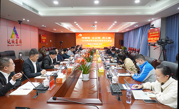 為進一步鞏固深化黨建經驗,加強黨建總結宣傳,打造集團黨建特色品牌,10月25日下午,“黨建強 企業強 員工富”達欣集團高質量發展媒體見面會在集團總部舉行。人民網、新華網、新華日報、江蘇省電視臺、揚子晚報、現代快報、香港商報、南通電視臺、海安融媒體中心等媒體記者出席。海安市委宣傳部副部長、新聞出版局局長陳琳,海安市建筑工程管理局局長賈伯根出席并講話,集團董事長、黨委副書記馬和軍,黨委書記、副董事長劉厚純等有關人員參加見面會。