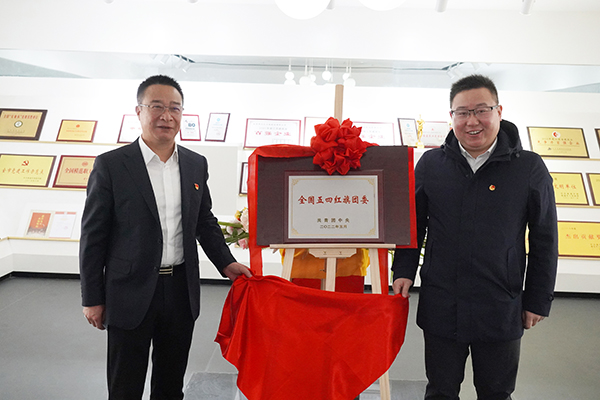 12月12日,南通團市委書記陳威濤為達欣集團榮獲“全國五四紅旗團委”授牌。共青團南通市委副書記周瀅、朱元星、馬駿(掛職)、四級調研員(南通市管)羅剛以及各部室主要負責人,共青團海安市委書記姜朔昶以及其他縣市(區)團委書記等領導一行40余人,共同見證了這一榮耀時刻。集團董事長馬和軍、黨委書記劉厚純、常務副總經理王邦國、黨辦主任陳春紅等參加活動。