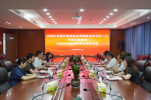 王邦國總經理對黃志良書記等校方領導的一行蒞臨調研指導,表示熱烈的歡迎。他結合行業形勢,就達欣近幾年的發展情況以及市場開拓、未來發展等內容作了介紹,他表示,達欣與江蘇城鄉建設職業學院結緣多年,雙方在理念、共識上有高度的契合點,希望雙方在接下來的合作中,不斷尋找產教融合的新方向和新途徑,共同發展、合作共贏。