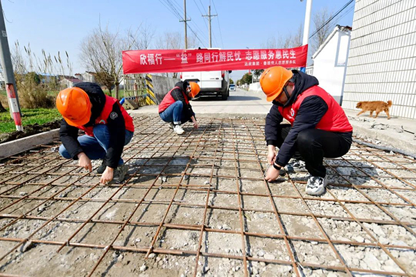 活動中,集團董事、第十一工程公司總經理丁國東和總公司志愿服務分隊隊長徐祝軍帶領志愿者將路面深層的積水和淤泥進行了清理,并重新澆筑混凝土路面,將坑洼的“煩心路”變成了平整的“連心路”。