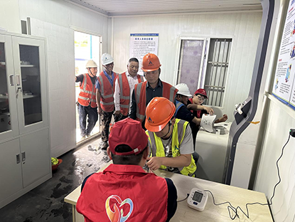 5月30日,第一志愿服務分隊聯合上海中醫藥大學醫學專業的實習生,到蘇州平江項目為一線職工進行健康防范知識、急救常識普及,工友們一一向醫護人員詢問日常工作中遇到的健康問題,了解了高血壓、高血脂和糖尿病等慢性病的預防和治療情況,讓工友學到了很多日常預防疾病的小知識。此外,志愿者們還用智能體檢機器人逐一為工友進行了血壓、血糖、體脂等一系列常規的健康檢查。