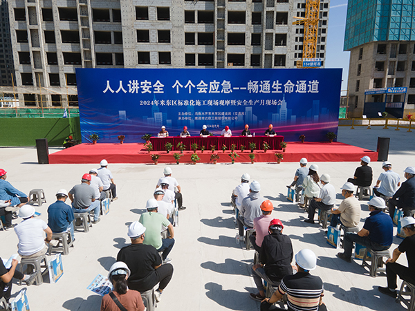 6月20日,由烏魯木齊市米東區建設局主辦的2024年米東區標準化施工現場觀摩暨安全生產月現場會在第十一工程公司承建的會展吾悅廣場五期項目舉行。米東區副區長馬連營,區應急管理局局長鄒波,區建設局局長、黨組副書記姜磊;卡子灣街道辦事處主任周疆艷,區質量安全監督站站長宮強,區質量安全監督站全體工作人員,第三方專家以及全區建設、監理、施工單位負責人共計200余人、60多家建筑施工單位代表參加了此次觀摩會。