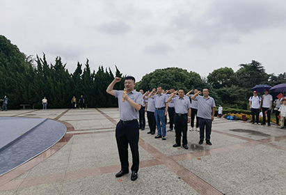 在抗日英雄群雕廣場,全體黨員懷著對革命烈士崇高的敬意,向革命英雄敬獻花籃,鞠躬悼念中銘記歷史。支部書記倪志榮帶領全體黨員重溫入黨誓詞,面對鮮紅的黨旗和莊嚴的誓詞,共同高舉右拳,莊嚴宣誓。