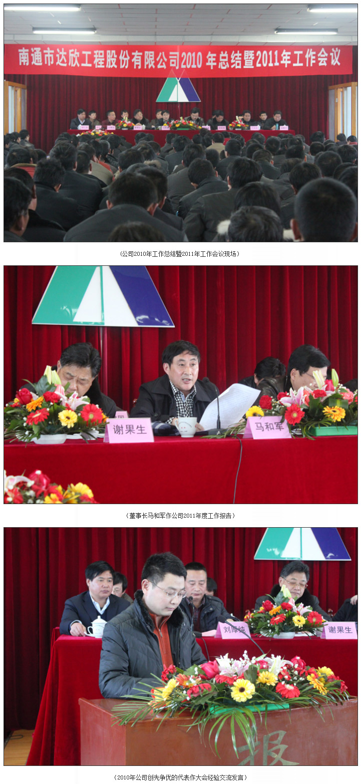 彩旗飄展,鞭炮齊鳴,南通市達欣工程股份有限公司2010年總結暨2011年工作會議于2月8日下午1:30分隆重開幕。