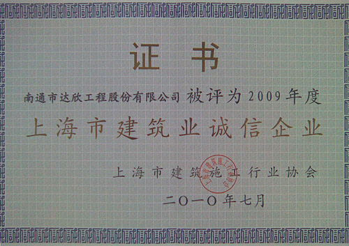 達欣股份首次挺進進滬施工企業前30強(進滬施工的江蘇企業僅有八家),這標志著公司跨入了進滬強企的第一方陣,標志著公司進滬施工進入了新階段!同時公司還再次榮獲了“上海市建筑業誠信企業”稱號。上海市的主流媒體“解放日報”、行業報刊“建筑時報”均予以報導。