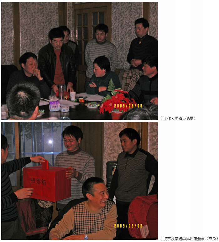 二〇〇九年二月六日,我公司在公司會議室召開了全體股東會議,出席會議的有公司全體股東,鎮政府鎮長吳志梅、副鎮長徐仁富等同志應邀列席了會議,這次會議共有十二項議程。