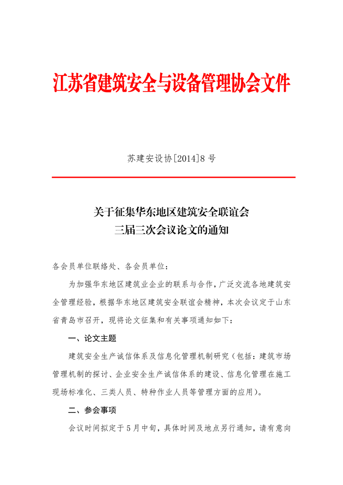 關于征集華東地區建筑安全聯誼會三屆三次會議論文的通知