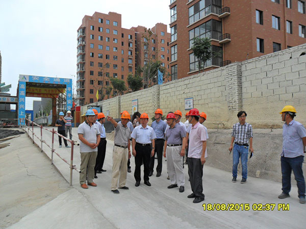李市長領導一行深入現場,在聽取項目經理徐文洪對該項目安全文明施工、綠色節能降耗等方面的情況匯報后,給予了充分的肯定,并提議將該項目揚塵噴水設備系統控制做法及現場安全文明標準化施工特色向全市的建筑施工企業推廣。