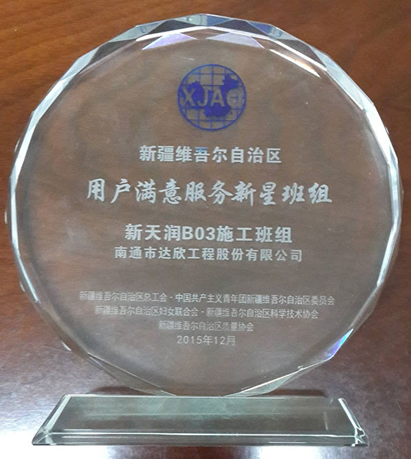 第十一工程公司新疆新天潤B03項目部,憑借可靠的產品質量、較高的社會美譽度贏得了用戶和業主的滿意,通過了2015年度新疆維吾爾自治區總工會、中國共青團新疆維吾爾自治區委員會、新疆維吾爾自治區婦女聯合會、新疆維吾爾自治區科學技術協會、新疆維吾爾自治區質量協會共同組織的專家組現場審核、答辯,成功獲得了新疆維吾爾自治區全區、全行業競爭中建筑業唯一的“用戶滿意服務之星新星班組”的光榮稱號(全區共獲得12個新星班組),充分證明了我公司的綜合實力和業界廣大客戶對我公司產品的認可。