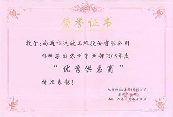 公司榮獲旭輝集團蘇州事業部 “優秀供應商”